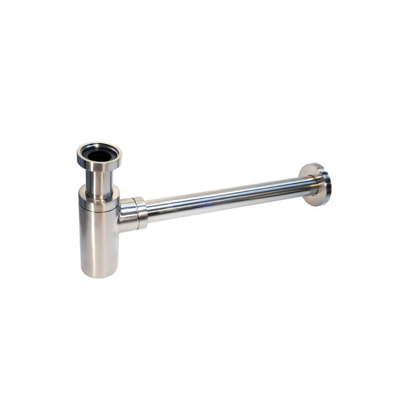 Sifones minimalistas redondos fabricados totalmente en latón con acabado en niquel cepillado.