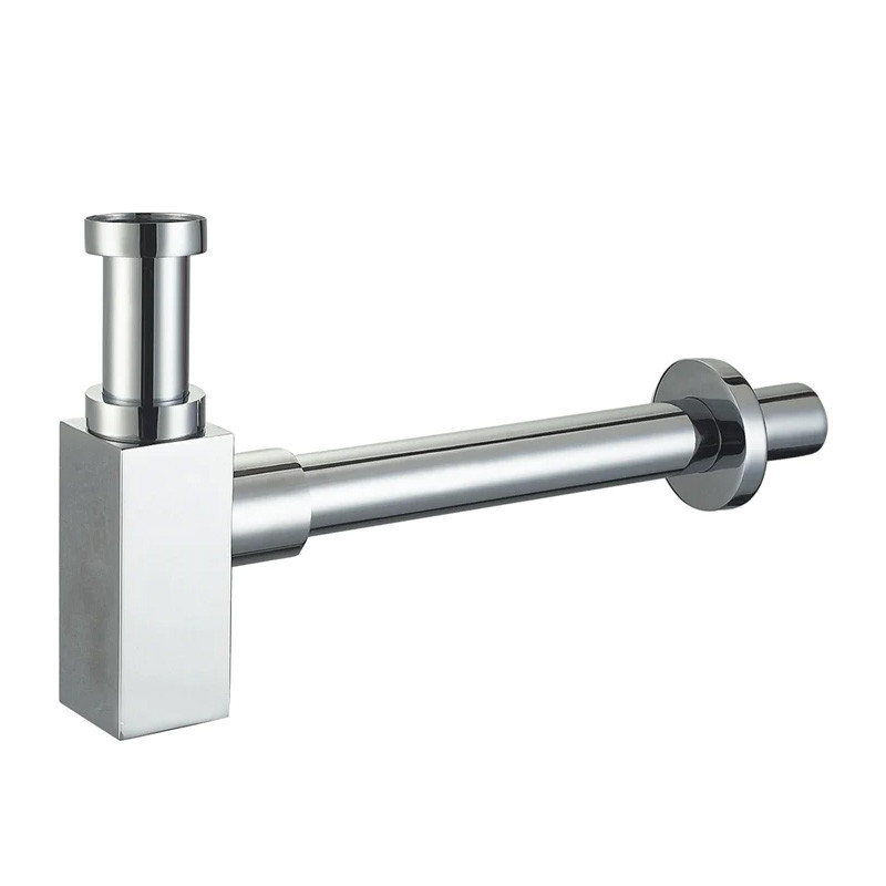 Sifones minimalistas cuadrados fabricados totalmente en latón con acabado en cromo.