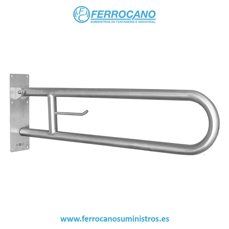 La barra abatible Nofer mural 80 cm inox satinado es una solución funcional y segura para el baño, especialmente diseñada para facilitar el apoyo en espacios reducidos. Con un portarrollo de giro vertical y sistema de freno progresivo incorporado, esta barra ofrece comodidad y soporte adicional para personas con movilidad reducida.