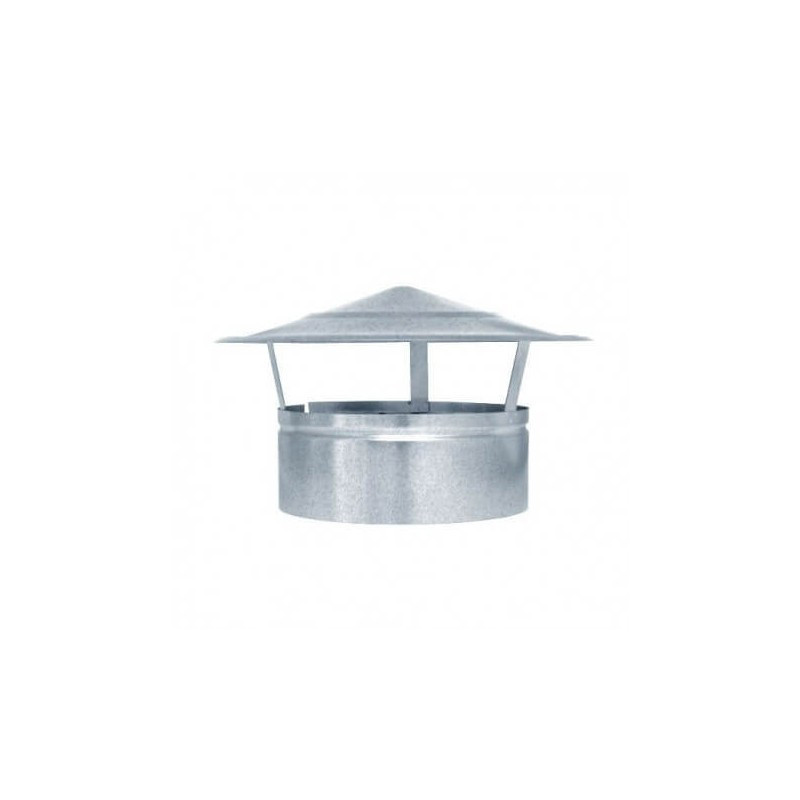 Sombrerete para estufa Ø 350 estilo chino, fabricado en material galvanizado: Accesorio diseñado para la terminación de conductos de estufas con un diámetro de 350 mm, con acabado galvanizado y diseño tipo chino.