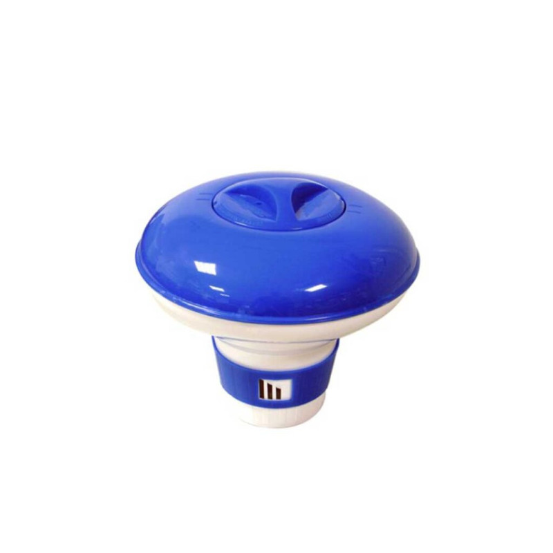 Dosificador flotante grande con capacidad para hasta cinco tabletas de cloro de 200 gramos.