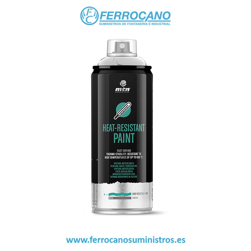La Pintura Anticalórica MTN PRO está elaborada principalmente con resinas de silicona y pigmentos termoestables especiales, brindando una excelente resistencia a temperaturas de hasta 690 - 700ºC.