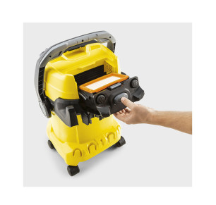 Este filtro está integrado en un cartucho filtrante patentado, que permite sustituirlo en segundos sin entrar en contacto con la suciedad: basta con abrir el cartucho, colocar el filtro nuevo y cerrarlo. Diseñado específicamente para adaptarse a las aspiradoras en seco y húmedo Kärcher WD 4–6, KWD 4–6 y MV 4–6, ofrece un ajuste perfecto y mantiene tu equipo funcionando al máximo rendimiento.