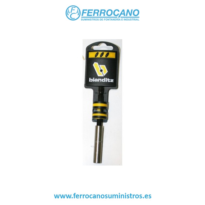 Un adaptador con cabeza hexagonal y propiedades magnéticas. Está diseñado con un acabado niquelado resistente a la oxidación.