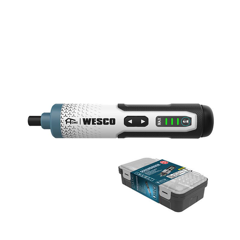 Atornillador eléctrico de 3,6V con un mango de agarre cómodo. Ofrece la conveniencia de un ajuste electrónico de par, con indicación LED de carga y una doble luz LED para una visibilidad óptima. Incorpora una caja de cambios completamente metálica para una mayor durabilidad.