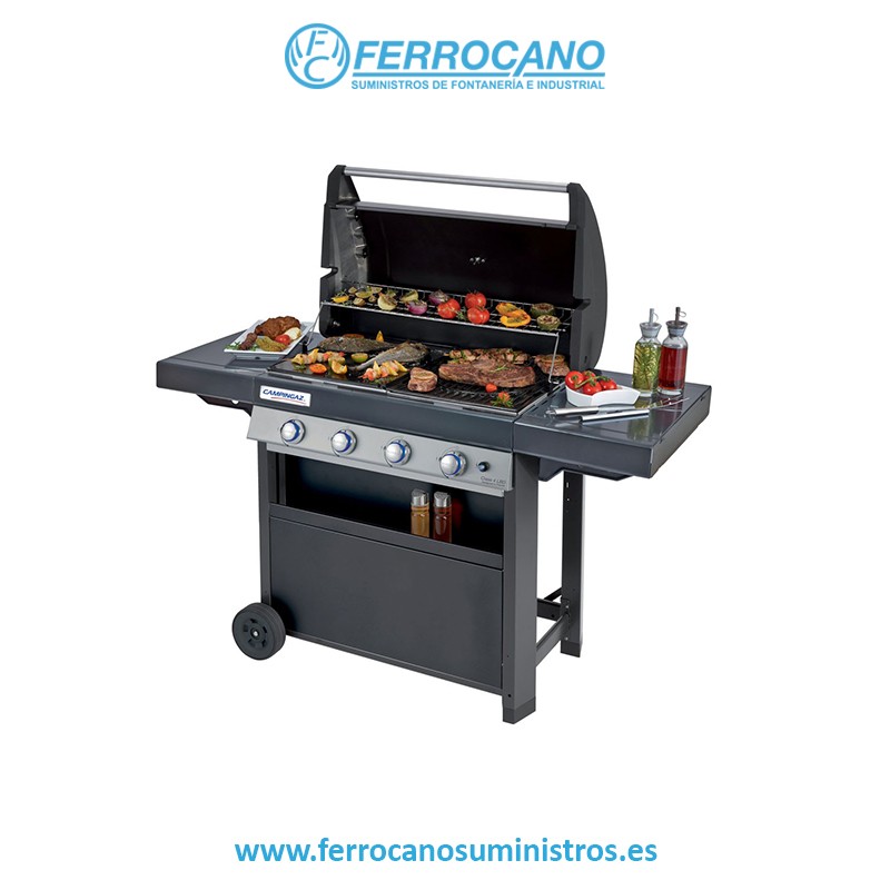 Barbacoa a gas con potencia de funcionamiento: 12.800W. Incorpora 4 quemadores fabricados en acero inoxidable. Las dimensiones de la barbacoa abierta son 160 x 66 x 147 cm. La superficie de cocción es de 78 x 45 cm, lo que proporciona una amplia área de cocina de 3,500 cm2. La barbacoa cuenta con una plancha y parrilla de acero esmaltado.