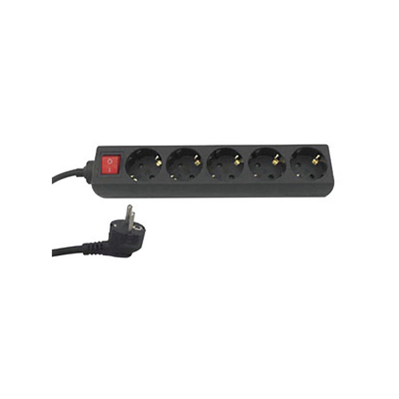 Base múltiple de 5 tomas en color negro con interruptor luminoso.