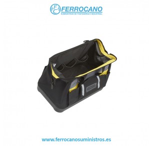 La Bolsa Portaherramientas Profesional Stanley Multibolsillo cuenta con una amplia abertura con cremallera de 44cm, que facilita el acceso rápido y cómodo a tus herramientas.