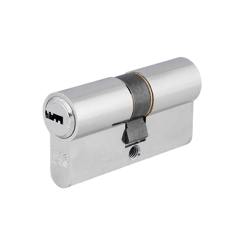 Este cilindro de perfil europeo cuenta con sistema de seguridad FAC, proporcionando una defensa eficaz frente a intentos de manipulación. Su leva larga garantiza una correcta compatibilidad con múltiples cerraduras, mientras que su acabado niquelado aporta resistencia a la corrosión y un aspecto moderno y discreto.