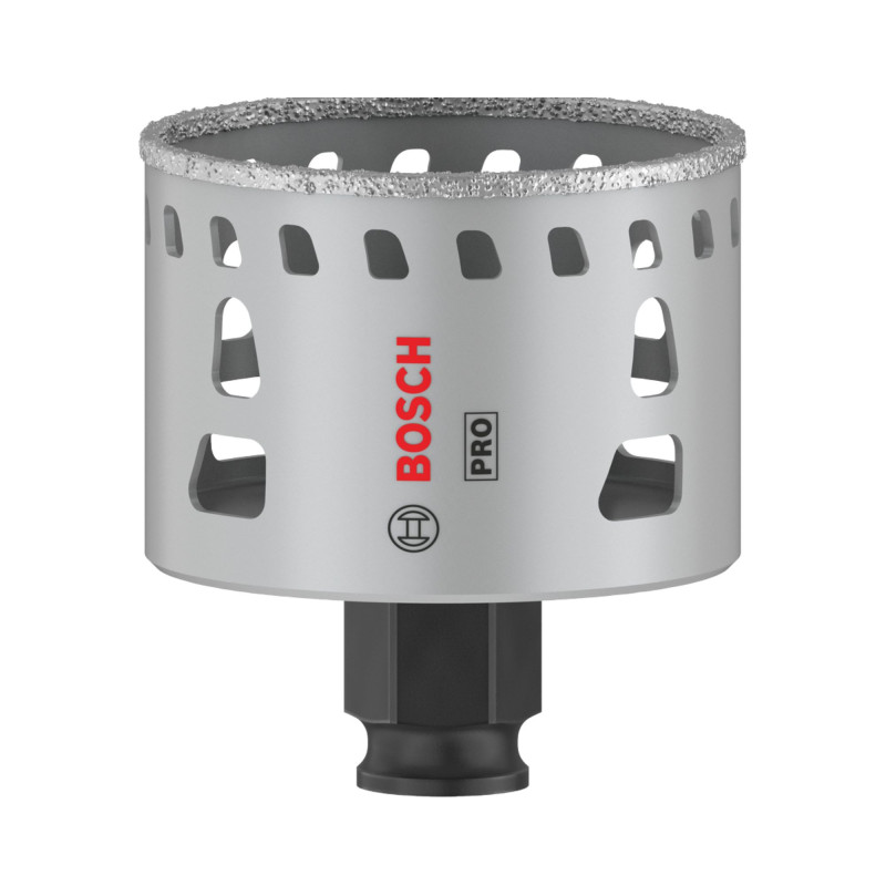 La Corona Bosch Pro Tile PC Plus HS 60 mm es una sierra de corona profesional diseñada para perforar materiales cerámicos duros como azulejos, porcelánico, gres y piedra natural con precisión y acabado limpio. Su borde con segmentos de carburo de alta calidad garantiza cortes sin astillado, facilitando la realización de perforaciones para grifería, tuberías y accesorios de baño en obras y reformas exigentes.