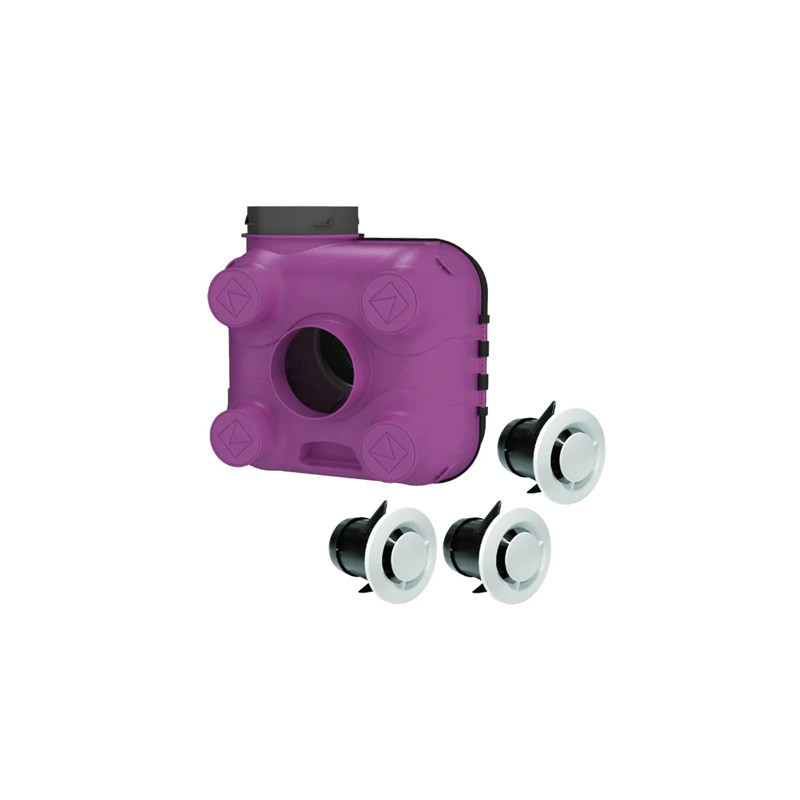 - Incluye 1 toma de Ø125 y 2 tomas de Ø80, permitiendo una distribución eficiente del aire.