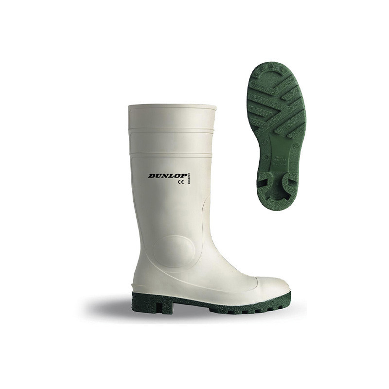 Esta bota de agua de seguridad Dunlop® 171BV, en color blanco y fabricada con PVC/Nitrilo, es ideal para trabajos en entornos de alta humedad o en contacto constante con agua, donde se requiere una protección segura en la puntera. Específicamente diseñada para la industria alimentaria, ofrece un rendimiento confiable y duradero.