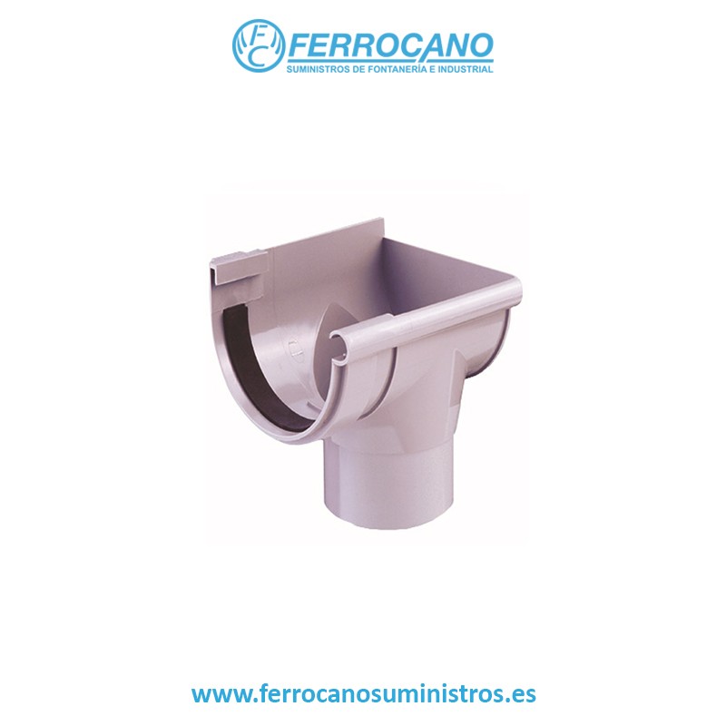 Fabricada en material resistente a la intemperie, esta bajada en color gris asegura durabilidad frente a rayos UV, humedad y cambios climáticos. Su diseño de instalación lateral izquierda permite una adaptación precisa en cubiertas, tejados y estructuras residenciales o industriales.