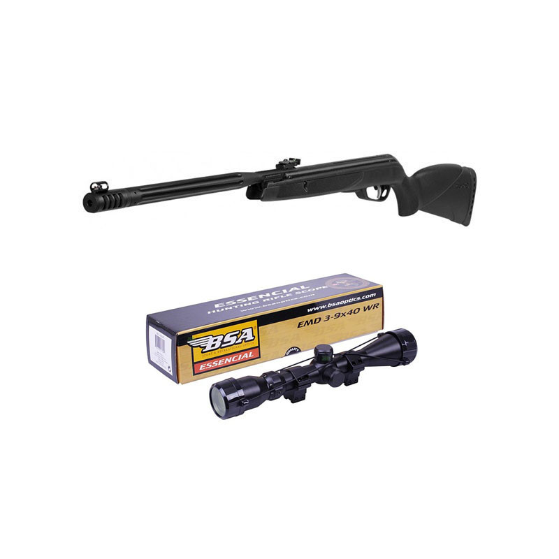 La Gamo Black 1000 Maxxim se destaca por su avanzado diseño de cañón con estrías y una doble cámara de aire, reduciendo el ruido del disparo en un 50%. La culata de fibra sintética es ambidiestra y ergonómica, facilitando su manejo, mientras que el sistema SWA permite al tirador ajustar las almohadillas de goma para reducir el retroceso hasta en un 74%. Este modelo está disponible en calibres 4,5 y 5,5 mm, alcanzando velocidades de 386 m/s y 286 m/s respectivamente, con una potencia de 24 Julios.