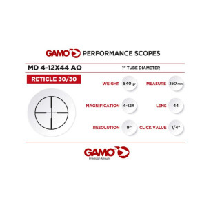 - Visor GAMO 4-12×44 AO (objetivo con ajuste).