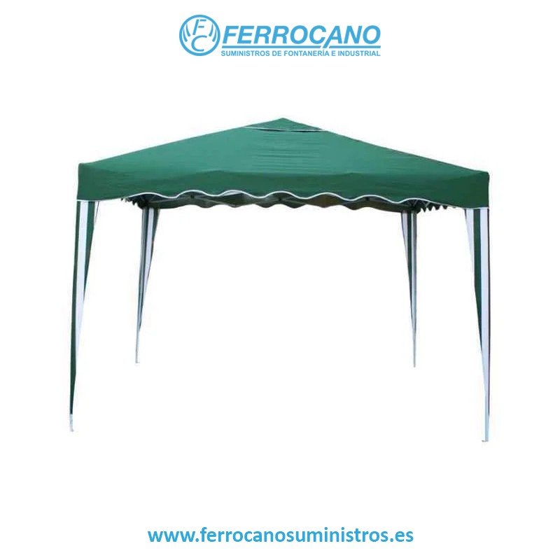 Fabricada con tela de poliéster de alta calidad de 160 g/m² en color verde, proporciona una excelente protección contra el sol y ligeras inclemencias del clima. Su estructura combina tubos de aluminio y acero de 25x25 / 20x20 / 10x20 mm, lo que garantiza resistencia y estabilidad con un peso reducido.