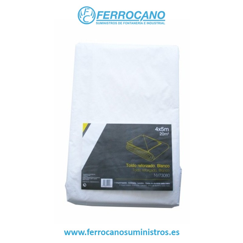 Medidas: 5x8 metros. Color Blanco. Impermeable. Antimoho. Lavable. Ojales de alumínio cada metro.