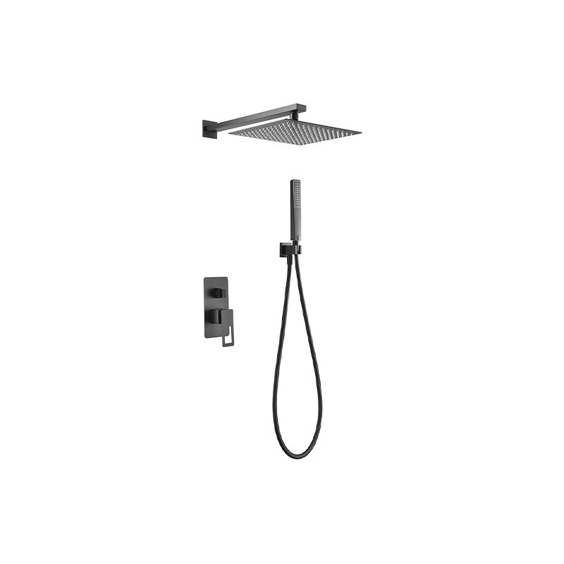 Descubre el conjunto de ducha monomando empotrado de la Serie Suecia de IMEX, una combinación perfecta de diseño y funcionalidad. Su rociador cuadrado de acero inoxidable S304 (25x25 cm) destaca por ser extraplano, con acabado en negro mate y sistema antical, garantizando una experiencia de ducha lujosa y sin complicaciones.