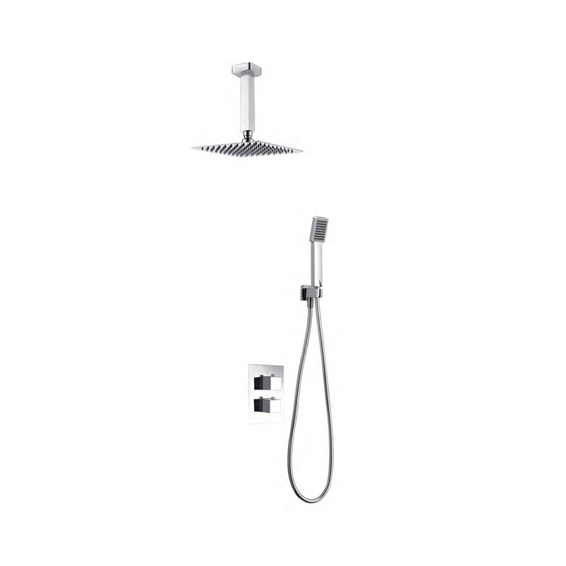 - Grifería termostática elaborada en latón cromado, con sistema de 2 vías y caja de registro.