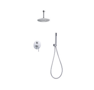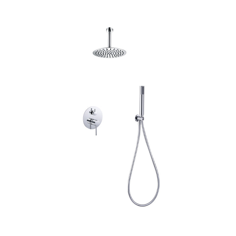 El tubo de salida a techo, el mango de ducha de una posición, y la grifería monomando, todos en latón con un acabado cromado, aportan una estética sofisticada y duradera. Con un caudal medio de 12 L/min, este conjunto ofrece una experiencia de ducha confortable y eficiente.