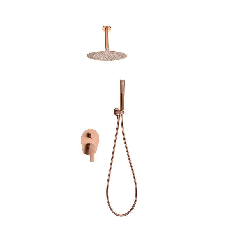 El conjunto de ducha empotrado monomando serie Paros de IMEX es ideal para quienes buscan una combinación de diseño elegante y funcionalidad en su baño. Con un acabado en oro rosa cepillado, este conjunto destaca por su durabilidad y estilo moderno.