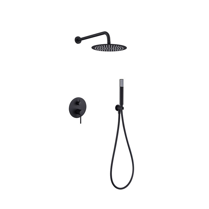 El sistema incluye un tubo de salida de pared también en latón negro mate, garantizando una estética uniforme y moderna. El mango de la ducha tiene una única posición, ofreciendo una experiencia de uso sencilla y efectiva. La grifería monomando, fabricada en latón negro mate, permite un control fácil con sus dos vías y un caudal medio de 12 l/min, asegurando un flujo de agua óptimo.