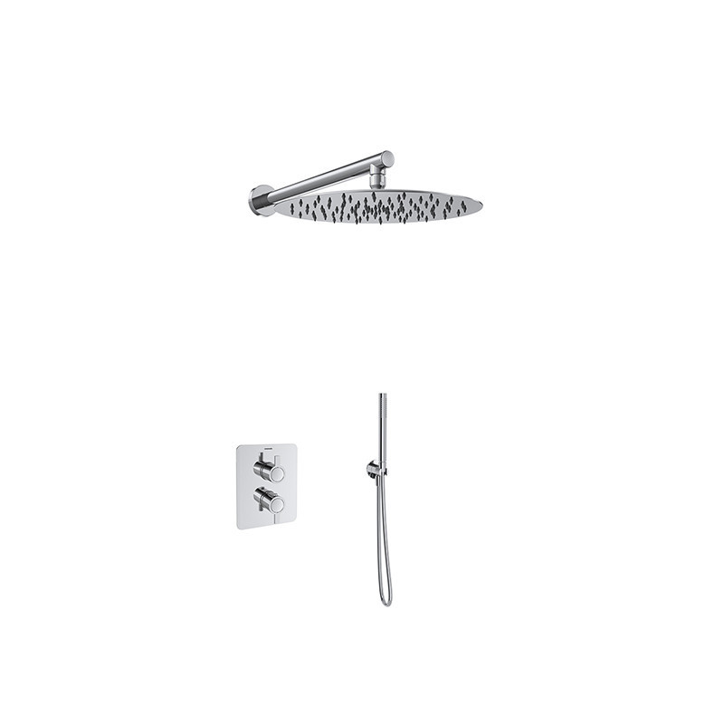 Este conjunto ducha termostático es ideal para quienes buscan un sistema de ducha seguro, eficiente y elegante, con un diseño empotrado que aporta un toque sofisticado al baño.
