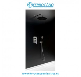 Los conjuntos monomando empotrados de 2 vías Ramon Soler Neoval ofrecen una combinación perfecta de diseño elegante y funcionalidad avanzada. Equipados con un rociador redondo de 240 mm, estos sistemas de ducha proporcionan una experiencia de relajación óptima gracias a su distribución uniforme del agua y su diseño minimalista que se integra a la perfección en cualquier baño moderno.