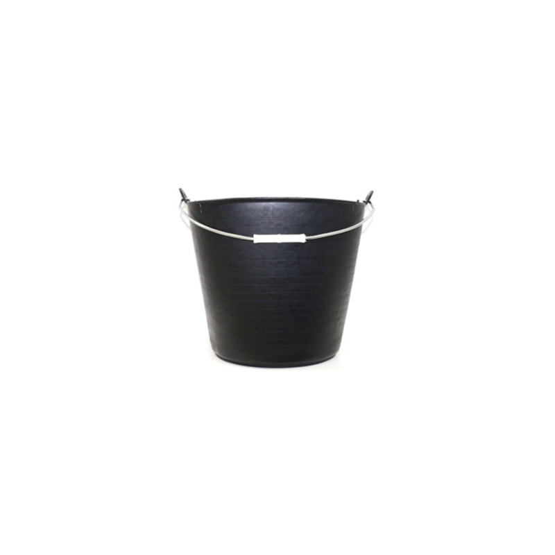 con asa metálica y depósito de polietileno negro de 26 litros de capacidad.