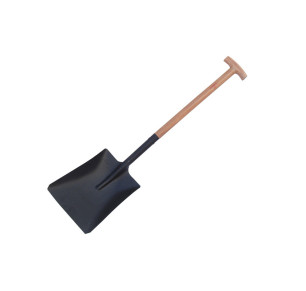 Pala cuadrada con mango tipo muleta, diseñada para trabajos de construcción, jardinería y agricultura.