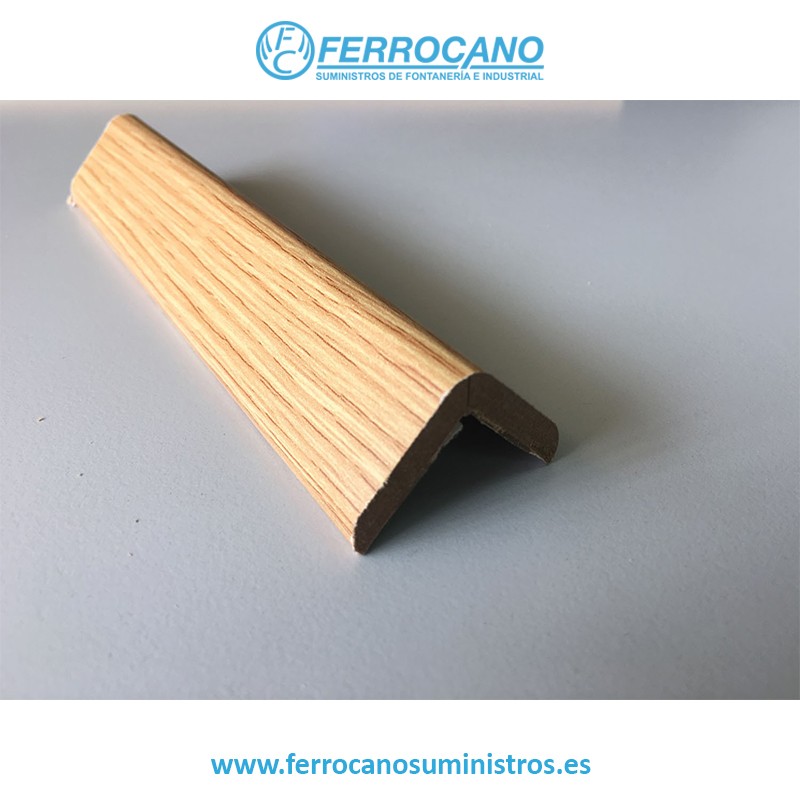 El ángulo de protección en MDF y melamina, en elegante diseño de roble (Roble-RO), se caracteriza por su adherencia excepcional. Sus dimensiones son de 30x30 mm de ancho y 2600 mm de largo. Su estructura está compuesta por dos piezas de MDF de alta densidad unidas, lo que aumenta su resistencia en comparación con piezas únicas. Estas piezas se ensamblan en un ángulo de inglete, proporcionando una superficie de unión más extensa y están unidas con un adhesivo de altísima resistencia a la humedad y las variaciones de temperatura.