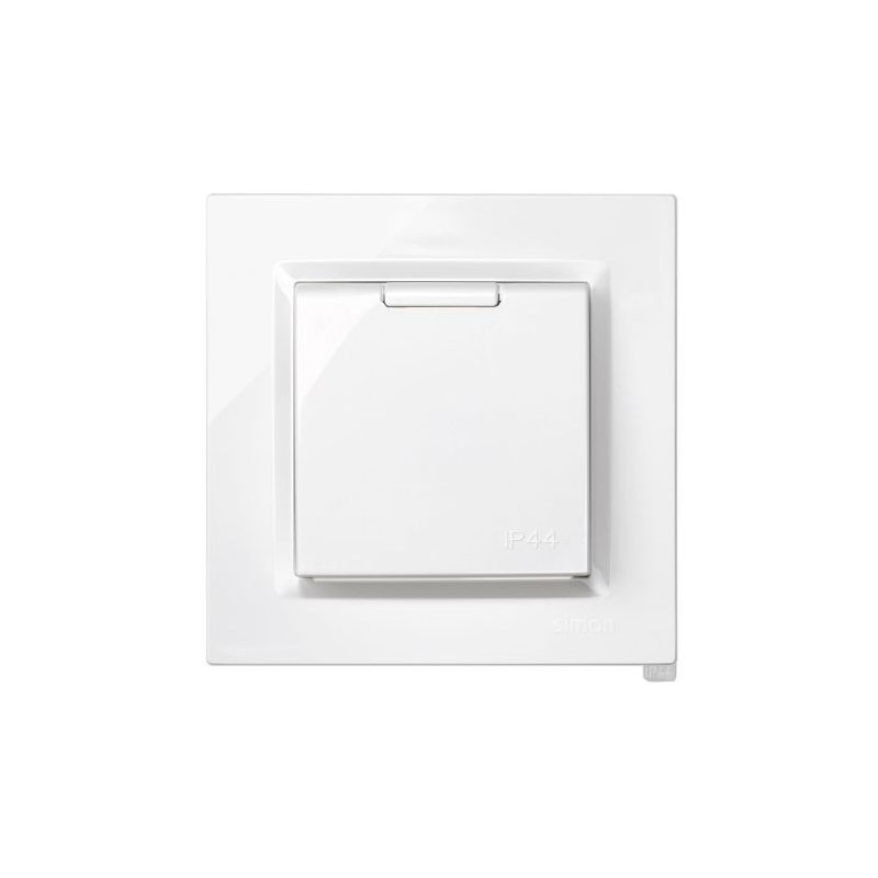 Base para enchufe eléctrico tipo Schuko de color blanco perteneciente a la serie 10 de Simon.