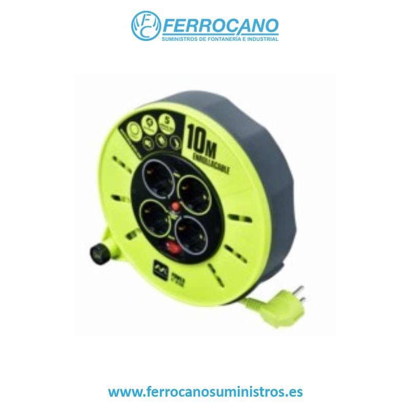 Enrollacables 10 metros PRO-XTEl enrollacables PRO-XT dispone de 4 tomas con protección infantil, interruptor ON/OFF, indicador LED de funcionamiento, disyuntor térmico como sistema de seguridad, mango extraíble para mejor rebobinado, cable 3G1,5mm en color verde pistacho para una mejor visibilidad y evitar así, accidentes y situaciones de peligro.El enrollacables PRO-XT es compacto, ligero y aporta todo el valor y tecnología para ser la mejor opción en energía portátil. Certificado CE. 5 años de Garantía