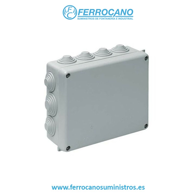 Caja estanca de gran formato, indicada para instalaciones eléctricas con mayor número de conexiones o dispositivos, manteniendo protección IP55 en superficie.