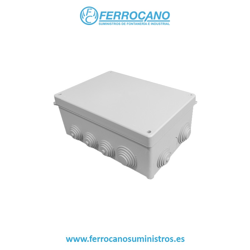 Caja estanca de gran capacidad, diseñada para instalaciones eléctricas complejas con múltiples conexiones o equipos modulares, manteniendo protección IP55 y facilidad de montaje en superficie.