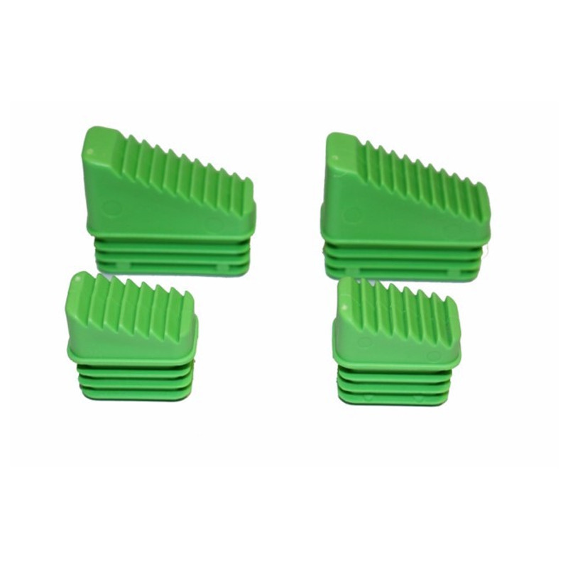 Contera de plástico verde diseñados para encajar en las patas de escaleras Vivahogar de 7-8 peldaños, en un conjunto de 4 unidades. Estas conteras están específicamente fabricadas para escaleras de forma rectangular y se pueden empotrar fácilmente. Son ideales para proteger el suelo y proporcionar estabilidad a la escalera, además de prolongar su vida útil.