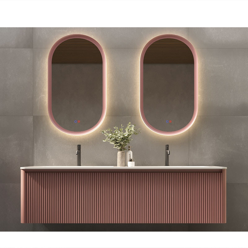 El espejo elíptico Ledimex Milano en acabado rosa coral es la combinación perfecta entre diseño decorativo y tecnología funcional. Su doble sistema de iluminación LED, tanto retroiluminada como perimetral, junto con sus sensores táctiles y función antivaho, lo convierten en una opción ideal para baños modernos y exigentes.