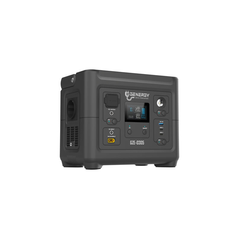 Generador solar con una potencia de salida de 500W, capaz de manejar picos de hasta 750W. Proporciona una salida de onda pura real y ofrece una carga ultrarrápida desde la red eléctrica o un generador. Equipado con una batería de tecnología LIfePO4 que ofrece 288Wh de almacenamiento, con una vida útil estimada de más de 10 años y 3500 ciclos al 70% de eficiencia.