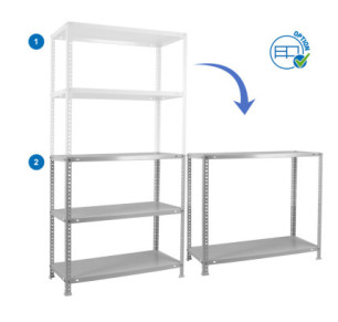 Estanteria metalica con tornillos de color GRIS con capacidad de carga por estante de 90 kg. El numero de estantes es 5 y las medidas (alto x ancho x fondo) son 2000x1100x400 mm. La ultima bandeja no debe superar los 10 cm de distancia con respecto al suelo. Producto europeo, calidad europea, podras encontrar las instrucciones de montaje en su interior o en este enlace: https://www.youtube.com/watch v=qmx57bCt7qc. Medidas en uso del producto: 2000x1110x410 mm
