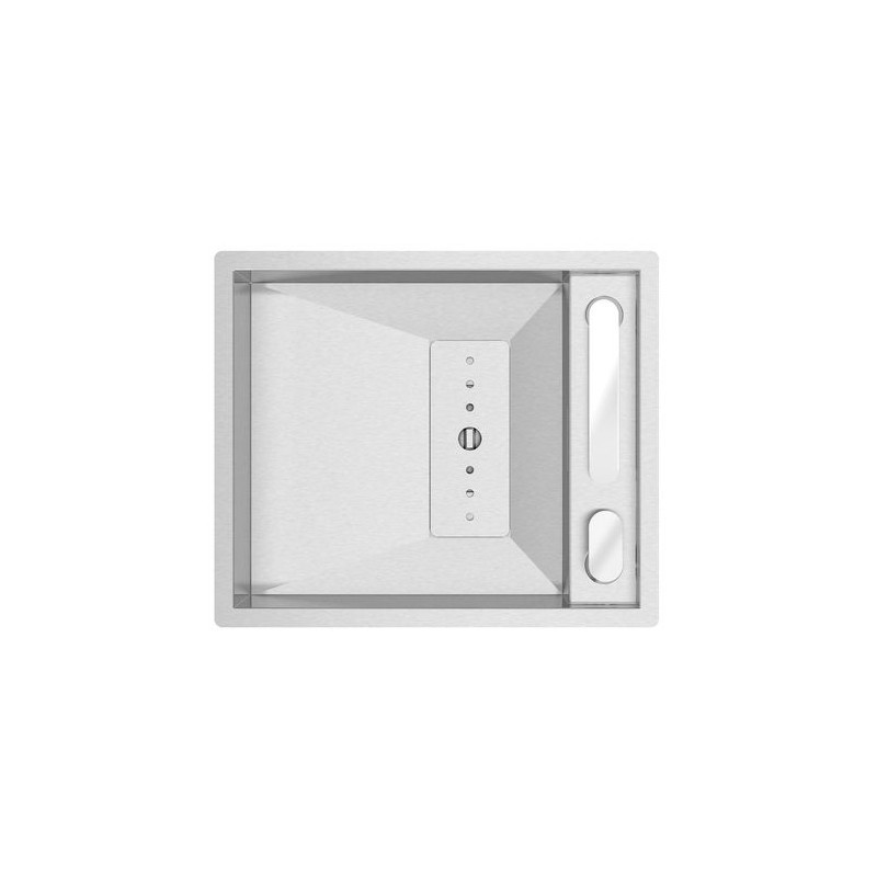 Fregadero Rodi Invisible 40 de 527x447mm con acabado en acero cepillado. Cubeta con un radio de 0 mm, equipada con un grifo retráctil integrado. Incluye una válvula rectangular con una tapa de diseño exclusivo. Este fregadero ofrece la posibilidad de quedar oculto en la encimera gracias a su tapa de cristal Invisible.