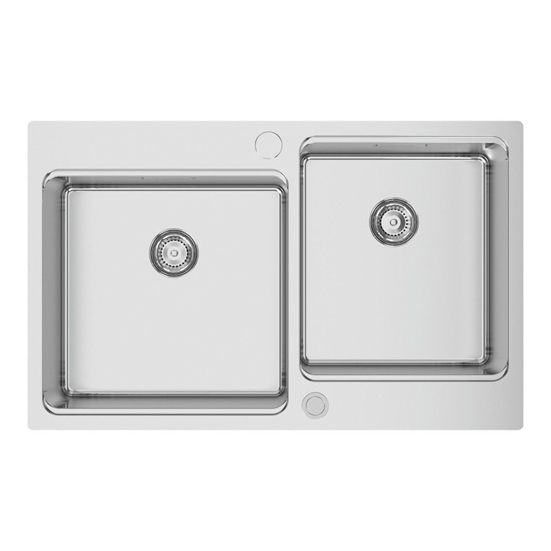 El fregadero Una Reverse 81 810x505 de RODI presenta cubetas con un radio de 25mm. Este radio, junto con el resalte integrado, lo convierte en un fregadero altamente funcional donde se pueden acoplar diferentes accesorios. La válvula estampada facilita la limpieza y la instalación.