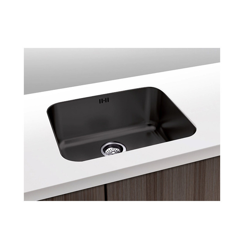Fregadero Plastimodul Roma de montaje bajo encimera negro con acabado arenado, con dimensiones de 45x40.