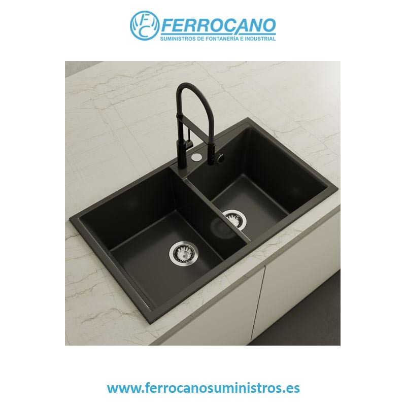 Descubre el fregadero de resina Roc Stone con acabado brillante, diseñado para aportar elegancia y un toque urbano a las cocinas más modernas. Su doble seno y su instalación sobre encimera lo convierten en una opción práctica y estilizada, ideal para espacios de estilo industrial y minimalista.