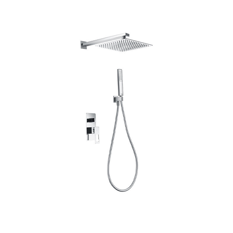 El tubo de salida de pared está fabricado en latón, aportando durabilidad y estilo. El mango de ducha cuadrado y la grifería monomando de 2 vías en latón cromo aseguran un control preciso del caudal (12 l/min) y una estética sofisticada.