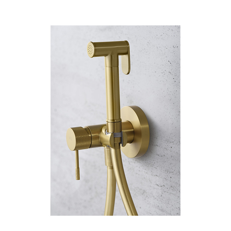 El Grifo Higiénico Imex Line en acabado oro cepillado es una opción elegante y funcional para bidet o WC. Con su diseño empotrado y control de agua fría y caliente, ofrece comodidad y estilo en cualquier espacio de baño.
