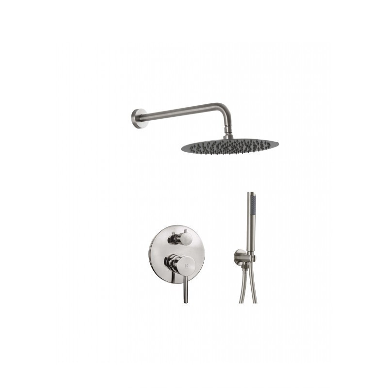 El conjunto de ducha empotrado Kalla Plenum 2 vías acero cepillado es la solución ideal para quienes buscan estilo, resistencia y un sistema de ducha funcional que realce el diseño del baño.