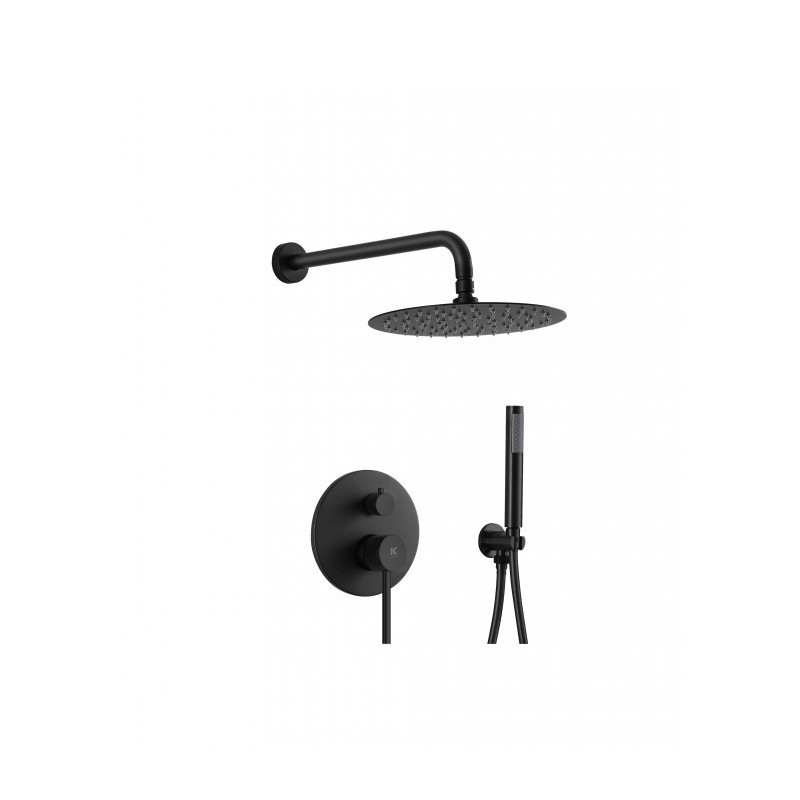El conjunto de ducha empotrado Kalla Plenum de 2 vías en acabado negro mate combina diseño moderno y materiales de alta calidad para ofrecer una experiencia de ducha cómoda, elegante y duradera. Su instalación empotrada aporta un estilo minimalista y funcional a cualquier baño.