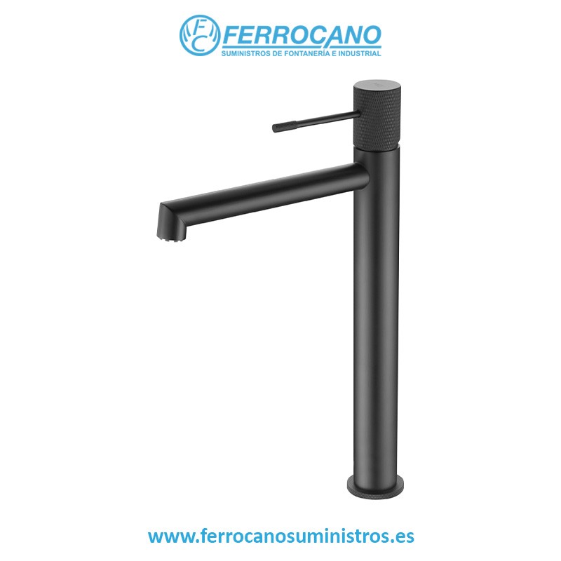 Monomando lavabo alto negro mate.