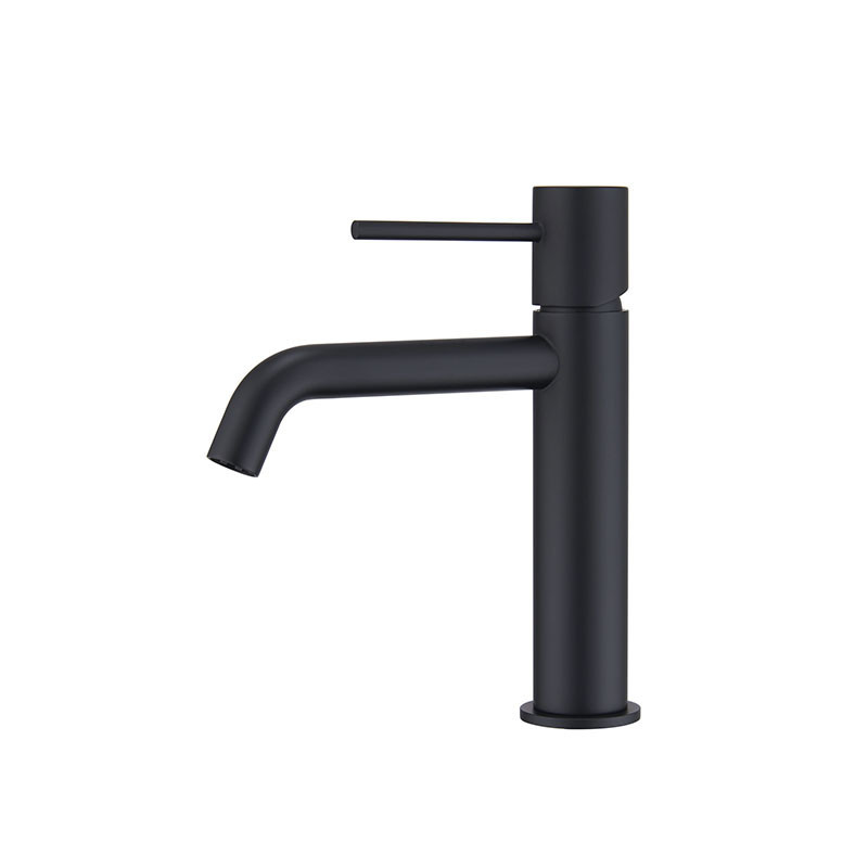 Monomando para lavabo en elegante acabado negro mate de la serie Monza de IMEX, con la referencia SKU: BDM039-1NG. El cuerpo de la grifería está fabricado en latón con un recubrimiento de electroforesis en negro mate. Cuenta con un cartucho cerámico de 25 mm que proporciona un control preciso del flujo de agua.