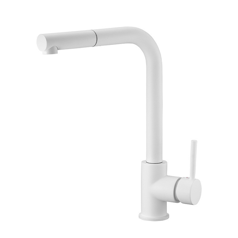 - Fabricada con cuerpo de grifería en acabado blanco mate, elegante y fácil de combinar con todo tipo de cocinas.